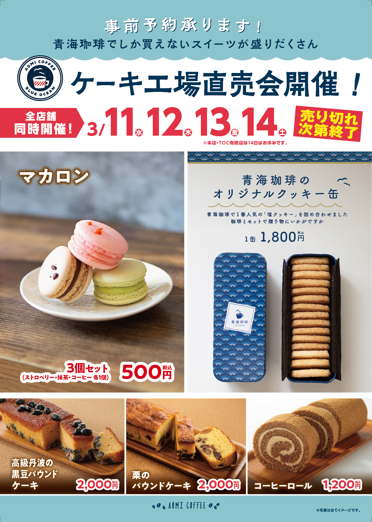 ケーキ工場直売会開催(3月11~14日)