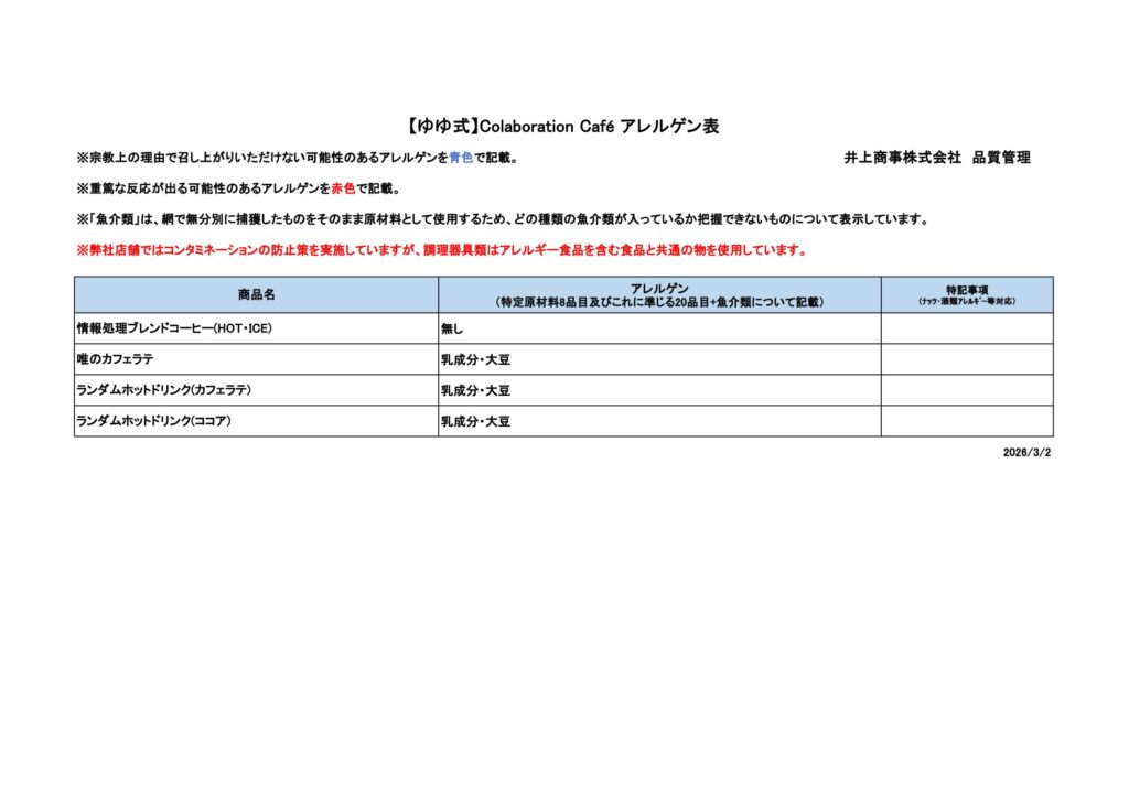2026年3月5日(木)から3月30日(月)まで、テイクアウトドリンクやコラボグッズの販売を実施いたします。